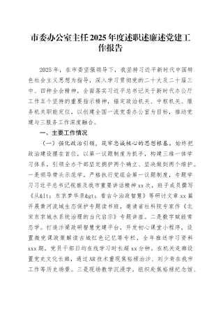 市委办公室主任 2025 年度述职述廉述党建工作总结一年来,在市委的坚强领导下,我始终坚持以习近平新时代中国特色社会主义思想为根本遵循,深入学习贯彻党的二十大和二十届历次全会精神,特别是习近平总书记关于办公厅...